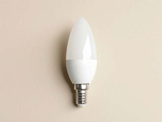 iQ LED bulb with E14 base, warm light color 3000K. Perfect for decorative lamps and everyday use; energy-efficient and durable.