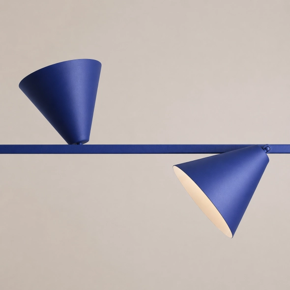 Form 4 Cobalt to designerska lampa sufitowa, która łączy minimalistyczną formę z praktycznymi rozwiązaniami. Cztery stożkowe klosze z możliwością indywidualnej regulacji pozwalają precyzyjnie skierować światło tam, gdzie go potrzebujesz — nad stół, blat czy wybraną strefę wnętrza.