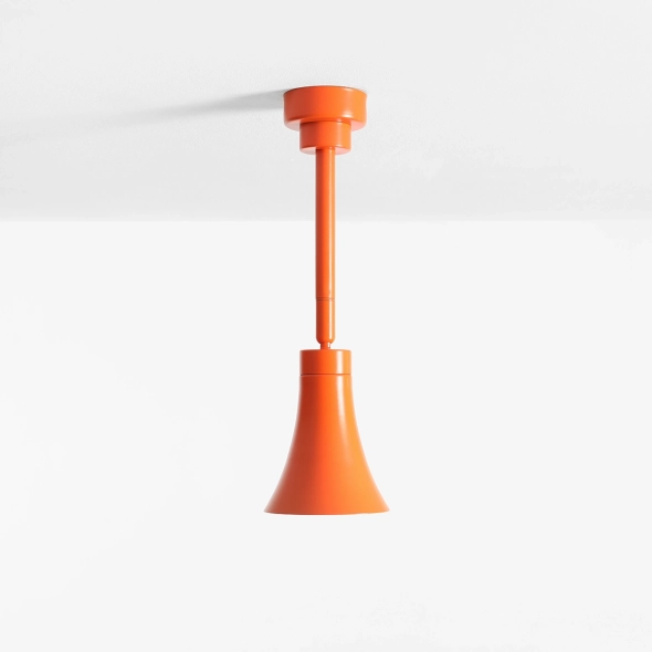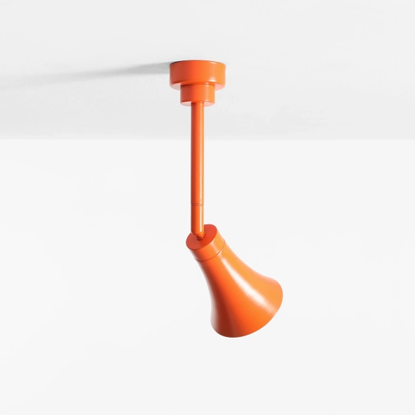 KIBO CEILING FLARE to najbardziej ekspresyjna odsłona plafonów z kolekcji Kibo. Intensywny, pomarańczowy kolor w połączeniu z minimalistyczną, rzeźbiarską formą tworzy odważny, designerski akcent. Inspirowany kosmicznymi tunelami klosz subtelnie otwiera się, emitując miękkie światło i podkreślając geometrię oprawy. Idealny do wnętrz, które potrzebują energii, koloru i wyrazistego designu.
