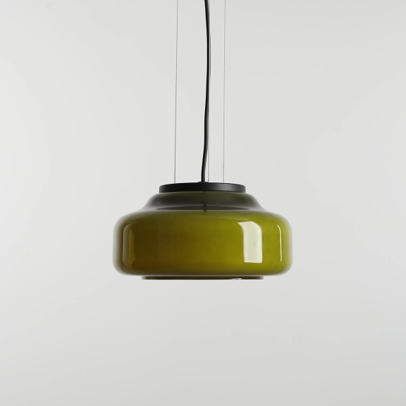 BONBON II M LIME, zaprojektowana przez Mikołaja Nicera (Nicer Design), to wyjątkowa lampa wisząca o szklanym kloszu w odcieniach zieleni i limonki. Wykonana z opalowego szkła, po zapaleniu światła subtelnie zmienia barwy – od głębokiej zieleni po jasną limonkę. Dzięki tej grze kolorów lampa dodaje wnętrzu świeżości, energii i nowoczesnego charakteru. BONBON II M LIME idealnie komponuje się z aranżacjami w stylu retro, modern lub eklektycznym. To designerskie oświetlenie, które ożywia przestrzeń i przyciąga wzrok subtelnym efektem gradientu.